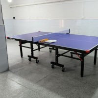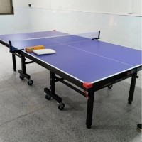室内单折带轮乒乓球台的台面材质通常采用MDF板材,这种材料可以为乒乓球台提供良好的弹性和耐用性。同时,乒乓球球台的周边部分多为钢铁材质,因而它在使用过程中可以具备足够的稳定性和坚固性。